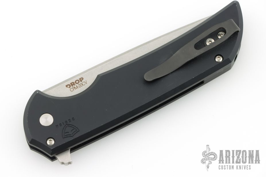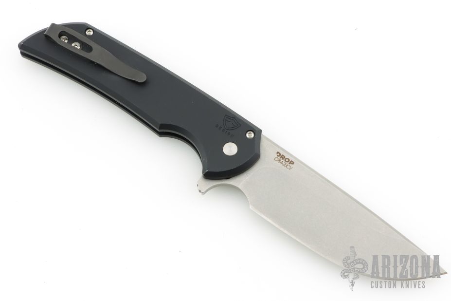 This Mordax by Pro-Tech is a Ferrum Forge design that was produced trough MassDrop. It features a stonewash finished blade with flipper. The handle has a black aluminum frame with tip up stainless steel clip. Comes with original box, pouch, and papers. Has some light scuffs and scratches, great condition otherwise.