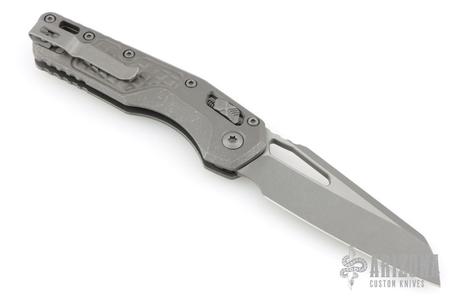 Released in 2023, the MSI (Microtech Standard issue) is Microtech's first knife to feature its fantastic RAM-LOK technology. This tough take on the crossbar lock features Microtech's signature step pattern made famous by the actuation switches on the Ultratech series. The large blade cutout gives ample room for reverse middle finger flicks as well as standard slow-roll thumb opening with or without gloves. If neither of those is your preference, then simply pull down on the RAM-LOK and the blade flies open with a simple wrist flick. The titanium handles exude a ton of class and provide a great hold in both standard and reverse grips. Rugged, durable, and made in the USA, we know that the MSI is going to quickly become a fan favorite among all members of the knife community.