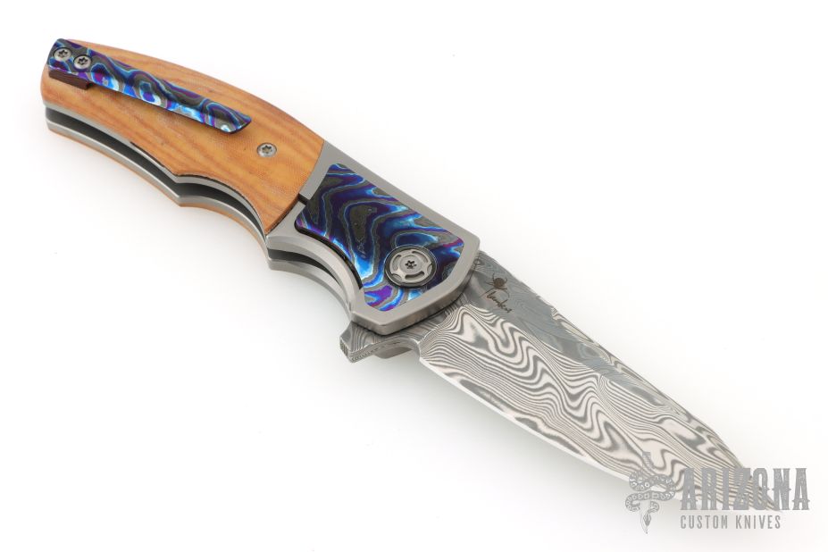 "I believe that in order to make a superior knife you must use superior materials. That is why I work with top grade, high-tech materials. The steels I generally use in my folders and fixed blades are CPM S30v, CPM 154 CM, BG-42, and Damasteel. The handle materials I mostly use range from G-10, Micarta, and carbon fiber to mother of pearl and fossilized mammoth ivory. I exclusively use 6al/4v titanium for the liners in my folders. I mostly make my bolsters from materials such as 6al/4v titanium, damascus, carbon fiber, timascus or mokume. When making Japanese style blades I generally use 1050, 1084, or L6. The handles will usually consist of a phenolic handle covered in stingray skin then wrapped with a nylon cord that has been impregnated with resin to give it maximum strength, toughness, and longevity. I am constantly striving for perfection in creating, for what I feel is one of the highest quality knives on the market today."