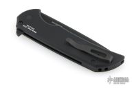 This Mordax by Pro-Tech is a Ferrum Forge design and features a black drop point blade. The handle has a black aluminum frame with black tip up stainless steel clip. Reg G10 inlaid push button. Comes with original box, pouch and papers. Has a couple light scuffs, excellent condition.
