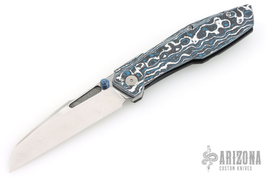 Home Products Raikou Frame Lock - Frost Fat Carbon and Damasteel