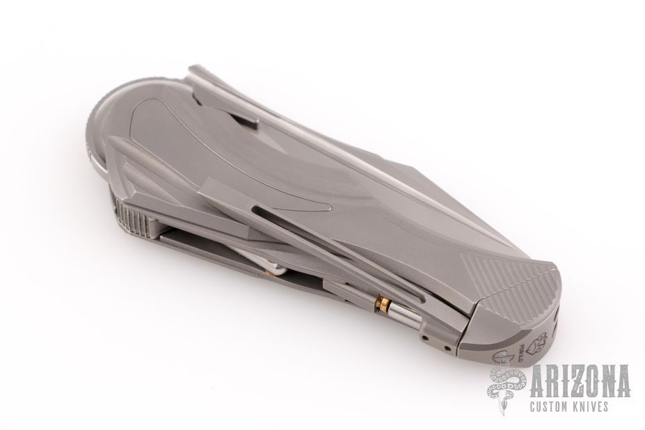 Many knives claim to be unique, but the Poikilo Blade Carmen puts those knives to shame. Here is a pocket knife that's truly special and one-of-a-kind. Well-made from premium materials machined to near-perfect tolerances, the Carmen is a functional EDC blade. It utilizes a "Press Lock" mechanism to secure the blade open during use and has a three-position pocket clip. It's how you change the clip's position—and the little brass element that ejects from the handle—where things get weird. If you pull the pommel of the knife out to the first position, a small, rounded brass piece will eject from the knife (make sure not to lose it!); then, if you pull the pommel out further, you'll be able to remove the pocket clip and reposition it along the right or left side or on the spine. Just make sure to push the brass piece back in place before closing everything up again. This function, in addition to being a really engaging and different fidget experience, is designed to mimic the satisfying action of operating a bolt-action rifle. This knife is almost as much puzzle as it is premium cutting tool, which we think makes it awesome. Add one to your collection and experience one yourself!