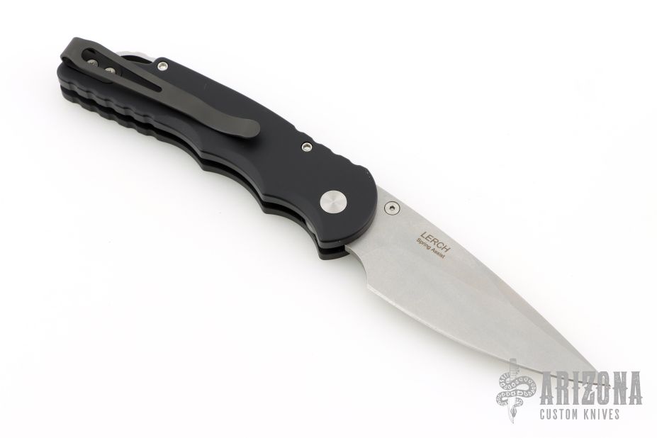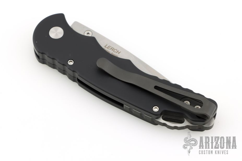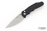 This TR-5 model has a black anodized aluminum handle with a two-tone black back spacer/lanyard attachment, and a deep carry tip-up pocket clip. The blade is stonewashed and outfitted with a thumb stud opener. The plunge lock enables safe use and provides solid lockup. Pro-Tech's TR-5 is an impressive addition to their lineup and boasts their longstanding build-quality and performance.