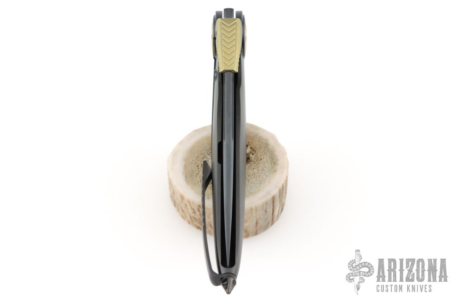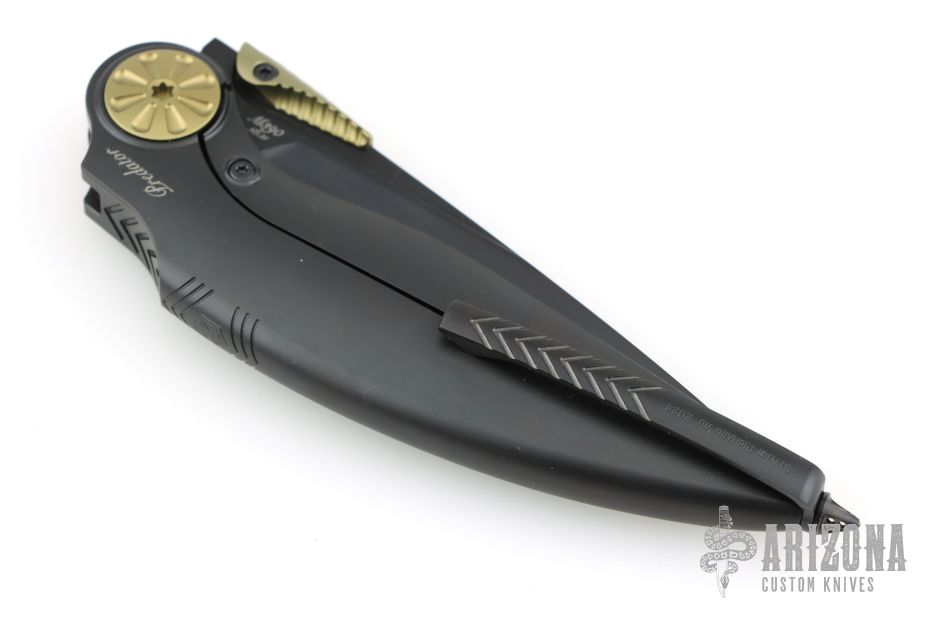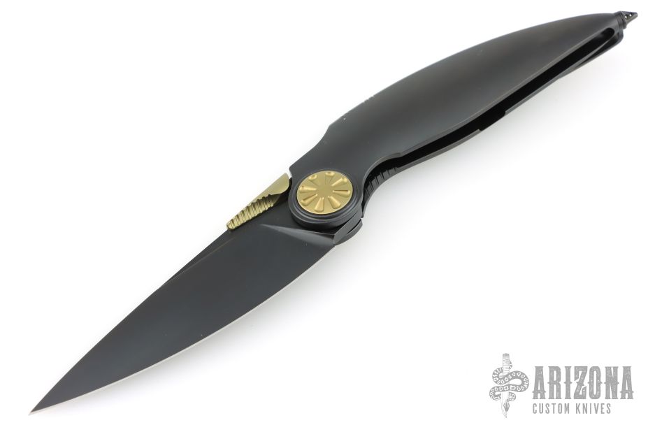 - Opener: Unique, textured gold thumb stud opener for smooth blade deployment.
