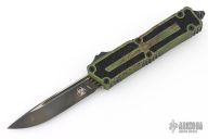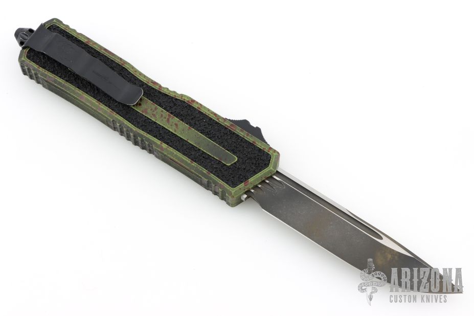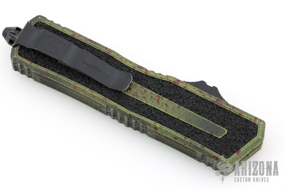 This Scarab II Gen III by Microtech features an Outbreak finished blade with fullers. The handle has a Outbreatk aluminum handle with non-slip inserts, a single glass breaker and tip down stainless steel clip. Comes with original box and papers. Excellent condition.