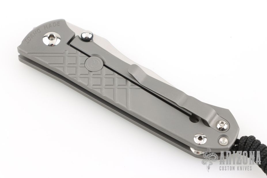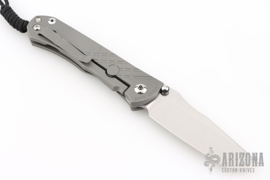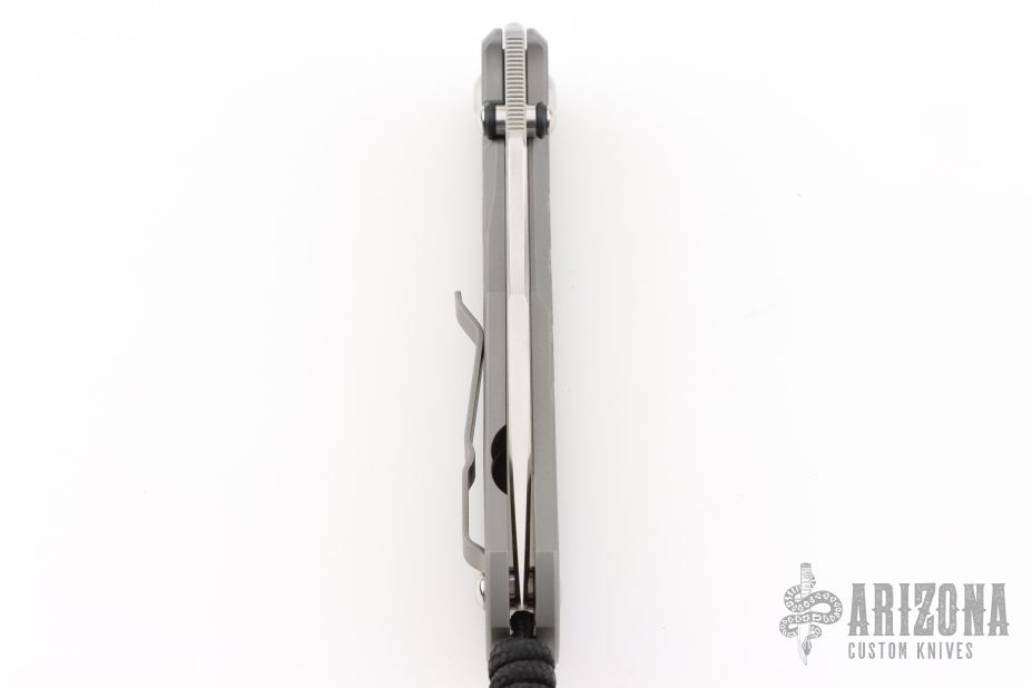 This Unumzaan from Chris Reeve Knives features a stonewash finished tanto blade with dual thumb studs and notched thumbrest. The handle is comprised of glass blasted and milled titanium with matching tip up clip. Lanyard pin with lanyard and spacer bead in pommel. Comes with original box, papers, cloth, lube, tools and COA dated November 19, 2025. New condition.