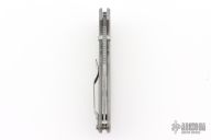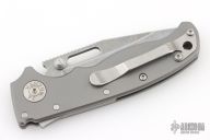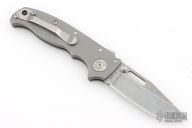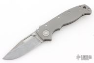 The AD20.5 by Demko Knives features the impressive Shark Lock and an even more impressive price point. The Shark Lock mechanism is situated on the spine of the knife and operated with a ramp-like ‘fin’, allowing you to flip the blade open and closed at will. It's probably the best thing about this knife and design, how quickly it can be deployed and ready for action. It acts as a blade launcher and a little wrist action is all it needs. Comes with original box and extra clip. This one has a stonewashed blade and bead blasted titanium handle. Has a couple light scuffs, otherwise Excellent condition.