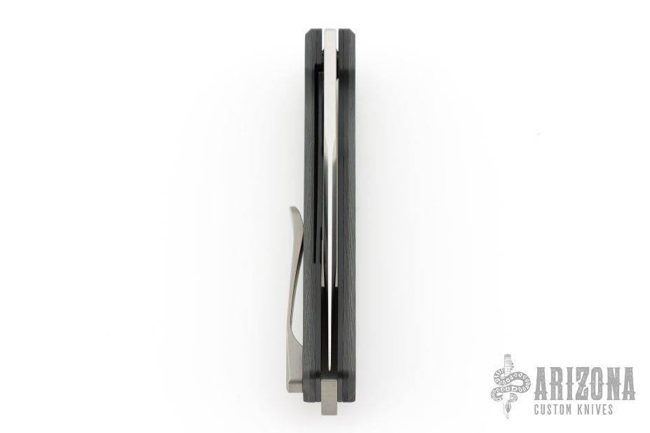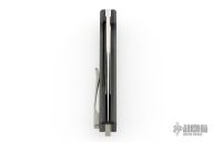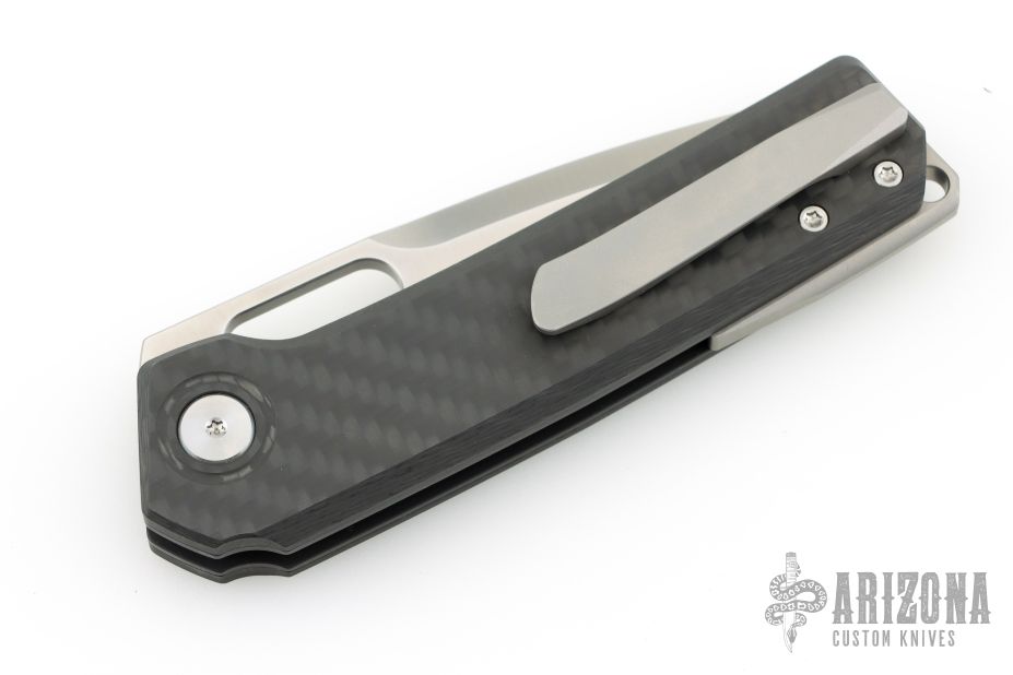 This breaker by Vanguard Knives features a satin finished spear point blade with a thumbhole.  The handle has carbon fiber scales over black steel liners a bead blasted titanium backspacer and pocket clip.  Includes a wooden display case and card board box.  New from maker!