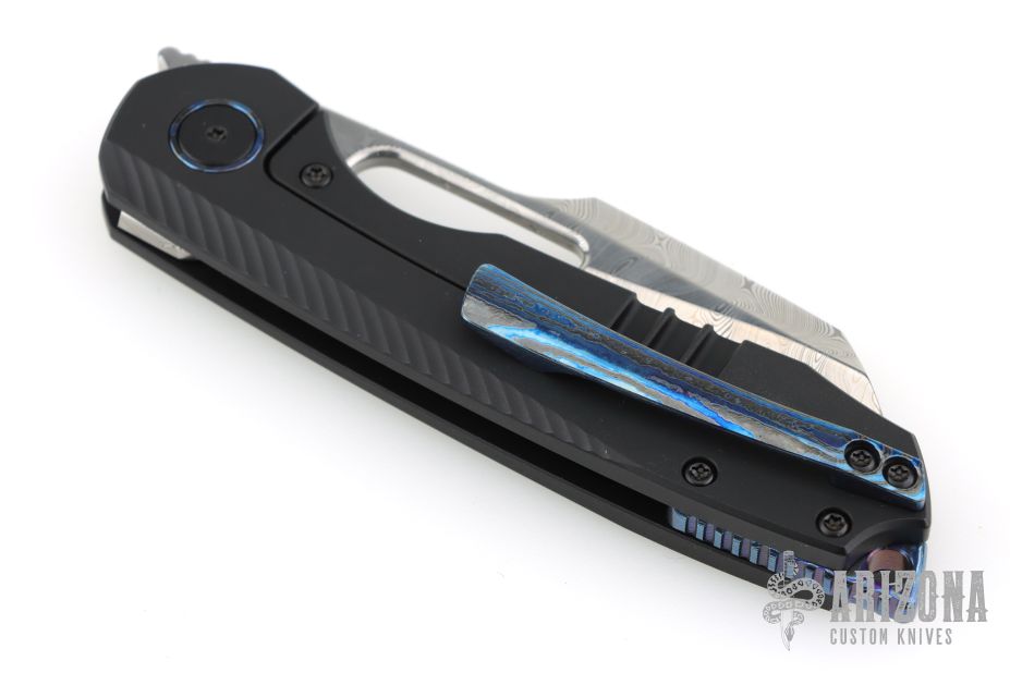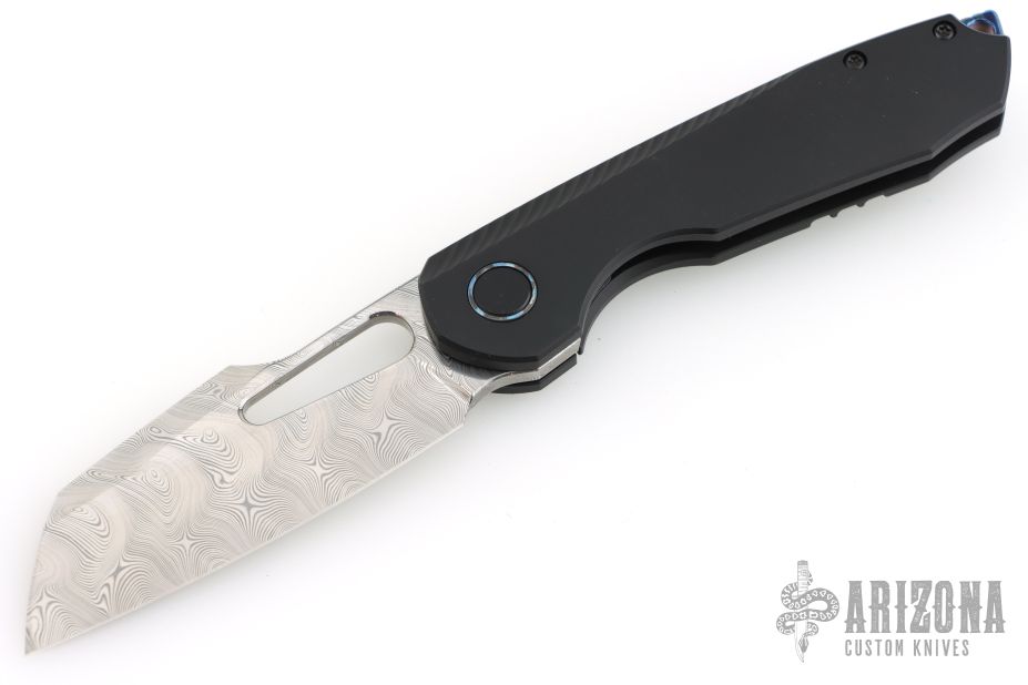 • Blade: Sheepsfoot damasteel blade with a hollow grind.