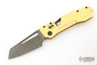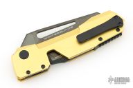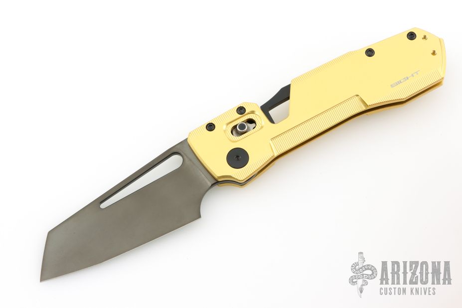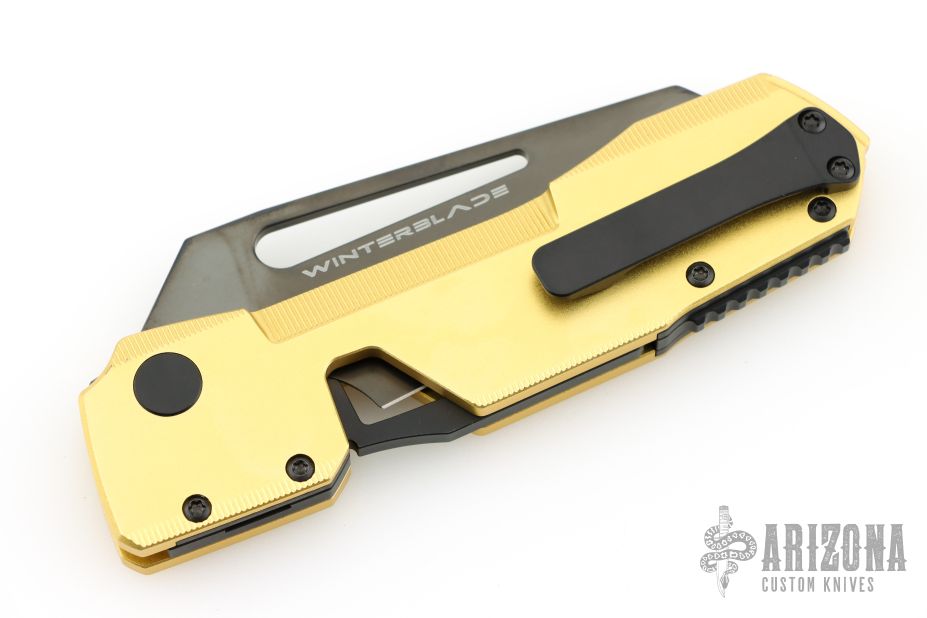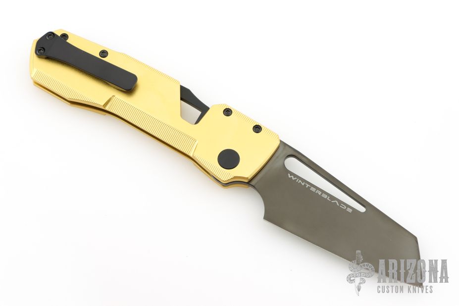 Introducing the WinterBlade Co. Factor 8ight GOLD Limited Release Knife, featuring a sleek and stylish design with a sheepsfoot blade type. This top-notch pocketknife is perfect for collectors and enthusiasts alike, with a single blade made from high-quality DLC Magnacut material. The aluminum handle adds to the knife's durability and comfort, making it the ideal choice for everyday carry. This limited release knife is a must-have for any knife collection, with its stunning gold color and premium craftsmanship. The WinterBlade Co. Factor 8ight is a factory-manufactured pocketknife that is both reliable and visually stunning. Whether you're a seasoned knife expert or just starting out, this knife is sure to impress.
