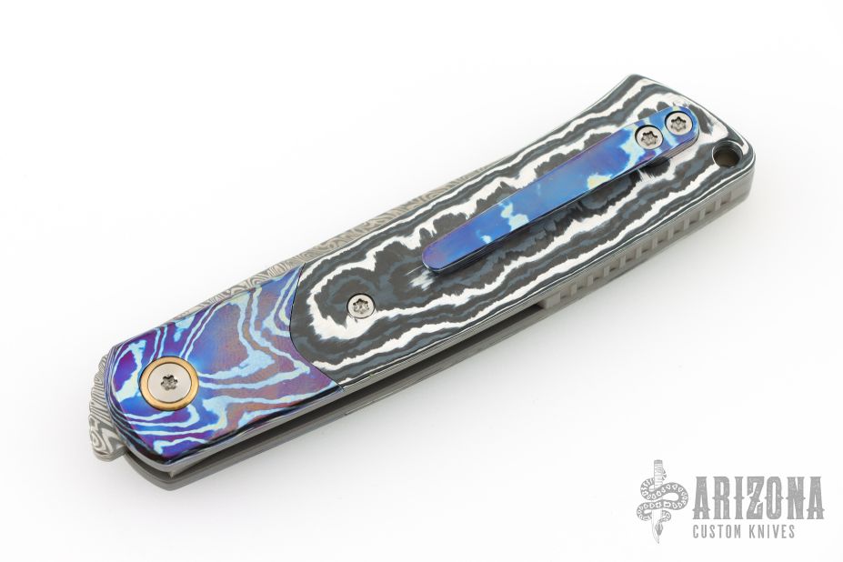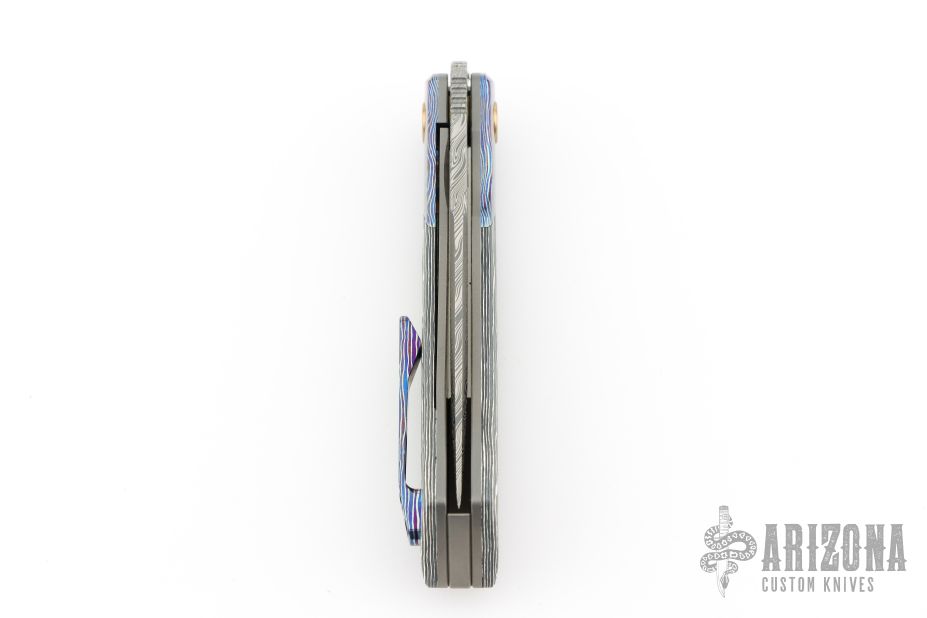 The Reate Tribute is a front flipper knife made to exacting tolerances to be a useful tool and addictively fidgety. The blade is made of premium Damasteel , which will hold it's edge for a very long time and will resist corrosion. The handle has a clean design that's comfortable in the hand. It has a milled tip-up pocket clip.