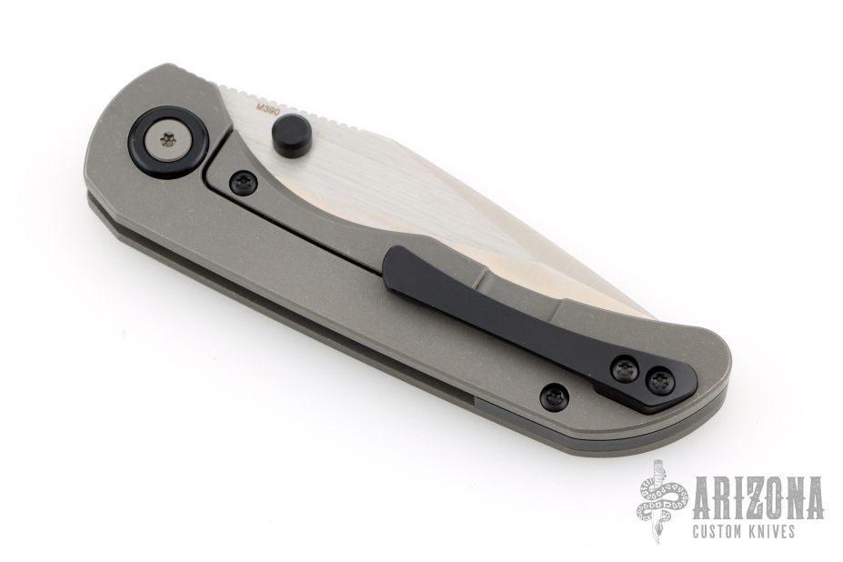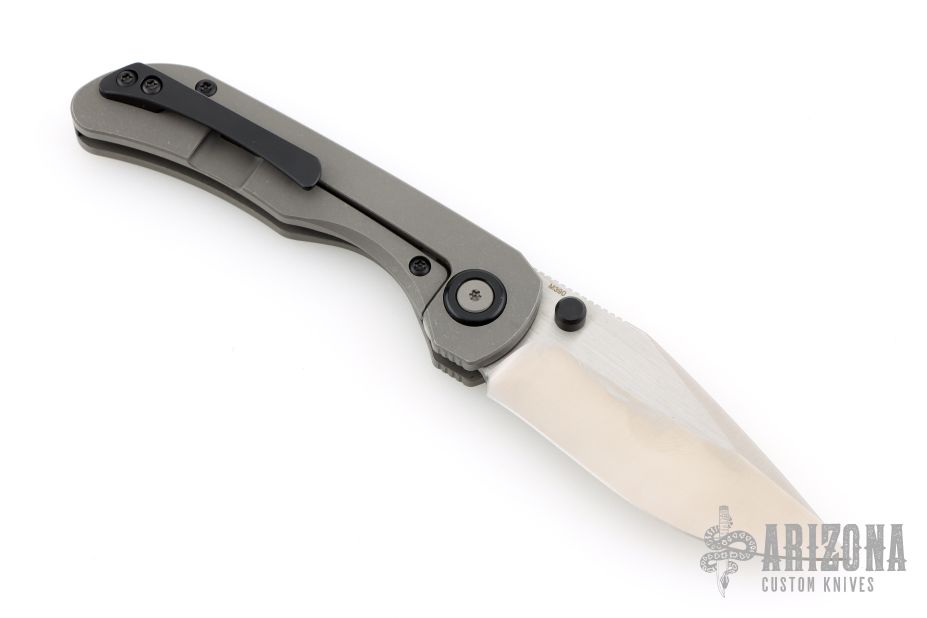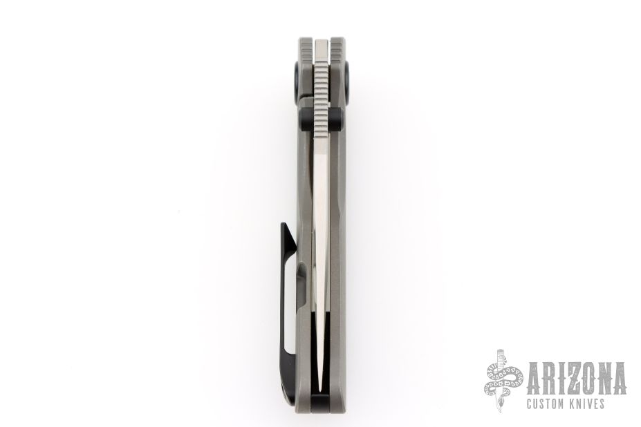 Features: Hardened Steel Lock Insert with Ceramic Detent, Ceramic bearings, titanium backspacer, titanium pocket clip, thumb stud deployment.