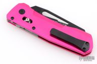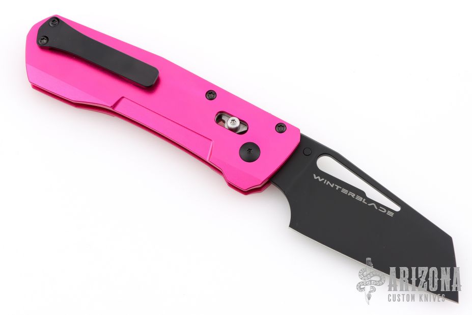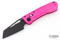 This SEVERN variant features pink anodized 7075 aluminum scales with a bead blast finish… Blade steel is M390 (HRC 60-62) with black PVD coating… The pocket clip is one piece milled titanium with black PVD coating… Hardware is steel, with T8 screws throughout!