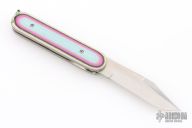 "Ever since I can remember I have had a fascination with knives. My grandfather gave me my first pocketknife when I was 5, and it was that moment that did it. I started making knives by taking apart my mothers kitchen knives. My parents thought that there was something "wrong" with me because I had a fascination with sharp objects. That all changed when I took them to a local knife show and showed them a whole room of people interested in knives. I seriously began making knives when I was 16. I have been making knives for over 25 years. For the past 10 years I have mainly concentrated on making folding knives and automatics. I mainly concentrate on making one-of-a-kind folding knives of my own design, but I do occasionally make a few fixed blades. I specialize in unique file work patterns, and I also do simple carving and some of my own sheath work. For steels I mostly use Damascus, but also use 154CM, CPM154, D-2, 1095, W-2 and others. Handle materials include Exotic Woods, Stag, Pearl, and various types of Ivories including Elephant, Mammoth, and Walrus. As far as knife builds go, I think I am going to concentrate on building more elaborate autos as well as converting some of my older designs into autos. I appreciate the challenge of making an auto, and it keeps knife making exciting for me.”