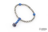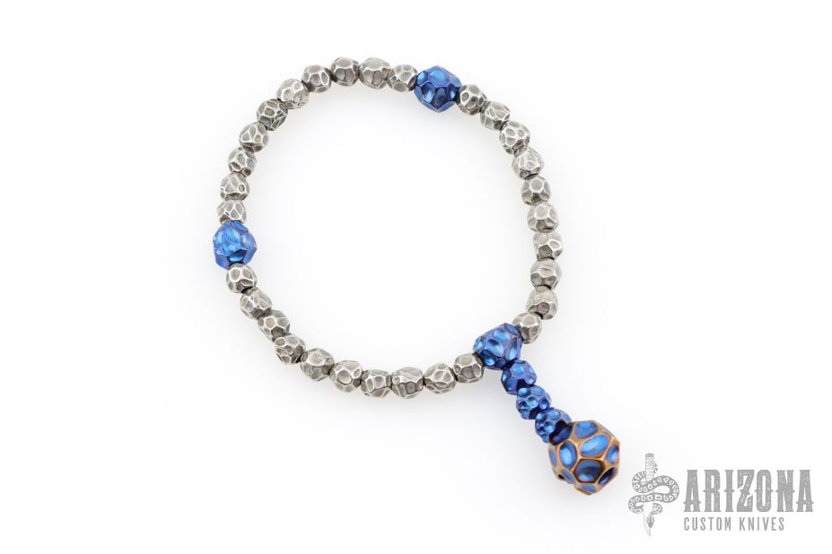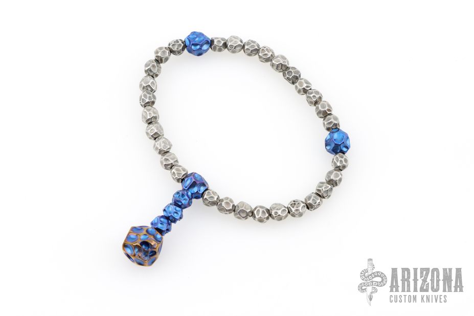 This Skull Bracelet from Dmitry Streltsov features anodized and textured beads and skulls. 4" diameter, fits up to a 7.5" wrist. Comes in a soft pouch, excellent condition.