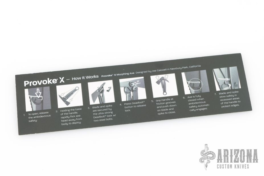 It’s not every day that a new tool comes along and completely transforms its category. The Provoke® X is exactly that tool. It builds on the success of the original Provoke® karambit, bringing the innovative Kinematic® technology to a new product category. This first-of-its-kind morphing axe fits in your pocket and deploys with a satisfying flick of the wrist, ready to swing into action at a moment’s notice.