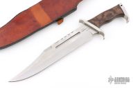 Gil Hibben lives and works in LaGrange, Kentucky. He began making knives part-time after his discharge from the Navy in 1956. He sold his first bowie knife for $45 and that sparked his long and famous career as a professional knife maker. While living in Seattle, WA after his Navy discharge, Gil worked as a machinist for Boeing Aircraft and learned a lot about metals and their properties. In 1964, while living in Salt Lake City, Utah, Gil started making knives full time. This was also the year Gil started making knives from the relatively new 440C steel. Although it is the industry standard now, Gil believes he was the first custom knife maker to use 440C. Hibben has been a full time custom knifemaker since 1957. Over the years Gil achieved fame as a premier custom knife maker and his work has been featured in, and on the covers of, national gun and knife magazines. He has established a whos-who following of collectors including John Wayne, Elvis Presley, Steve McQueen, Sylvester Stallone and Steven Segal or world leaders such as Israel's Defense Minister Moshe Dayan, the Sultan of Brunei and Vice-President Dan Quayle. He has taught and influenced some of the other legendary knife makers such as S.R. Johnson, Harvey Draper and Buster Warenski among countless others. Hibben designed the first line of Browning hunting knives in 1968, the American Kenpo Knife for Ed Parker. Gil's fame dramatically increased in 1988 when Sylvester Stallone, who had purchased several of Gil's custom knives for his own collection, asked Gil to design the now famous knife used in the movie Rambo III. Inducted into the Blade Magazine Cutlery Hall of Fame in 1990.