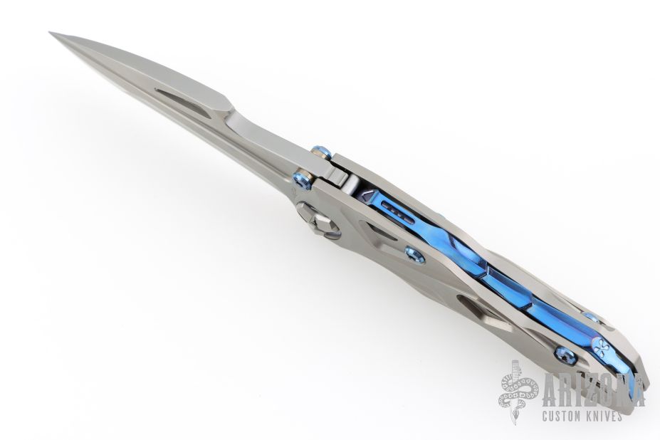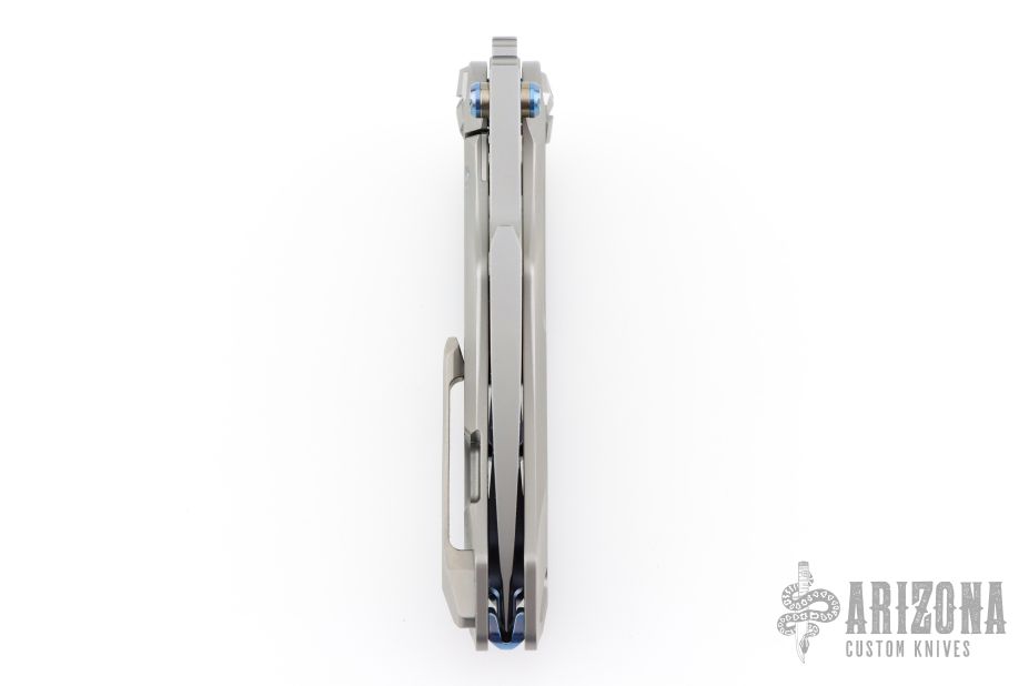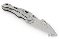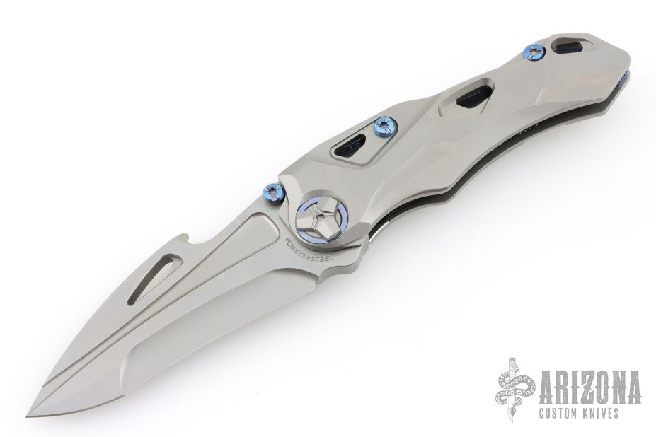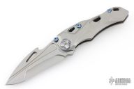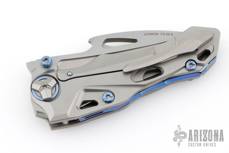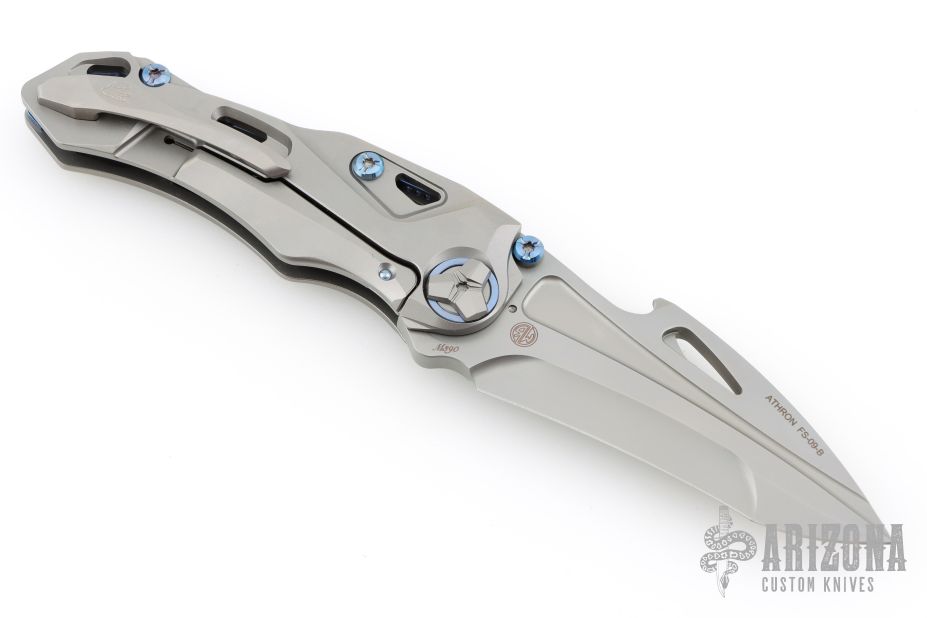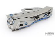 There is no doubt that the Athron has a killer look. We first thought of Alien VS Predator all encapsulated in a knife, but we've been hearing about its dinosaur skull shape—so let's go with that. We can see that, too. This flipper knife from Rike Knife has a smooth, lighting fast blade deployment. The to-die-for contoured titanium handle, like the blade, is beautifully shaped. Rike wanted an artistic, dinosaur-esque blade and refused to compromise on materials for this knife that's masquerading as a Transformer-ish work of art. This unique knife just begs to be in any cool collection. Functional and outrageously fabulous—we know you'll enjoy its uniqueness, too.