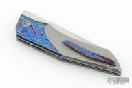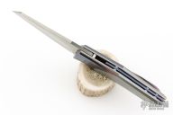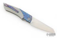 The first impression of this knife is its clean, sharp, and fluid lines. The handle's simple contrast of light and dark colors highlights its minimalist design. To emphasize its simplicity, designer Kass went to great lengths to hide all hardwares on the show side and surprisingly included the pivot screw as well, The blade is also maximally concealed within the handle, with only a small portion exposed as an accent. The reverse tanto blade is both classic and practical, perfectly complementing the its handle. Despite the trend of multiple quick-opening mechanisms build into one knife, the designer Kass has stayed true to he vision, retaining a front flipper as the sole opening method. This has been meticulously adjusted and polished, allowing you to experience the swiftest opening with the slightest effort.