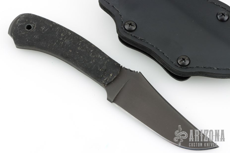All the versatility of the famed WK Belt Knife but with a smaller profile. It is well suited to processing game and most everyday cutting chores. Knife Specifications Blade steel: 80CrV2 Black oxide no-glare finish Blade length: 4" Overall length: 8" Blade thickness: .189" Skeletonized full tang Thumb index file work Sheath Lined Kydex® with leather cover Designed for multiple carry options. Comes with original packaging and Kydex/leather sheath. Excellent condition.