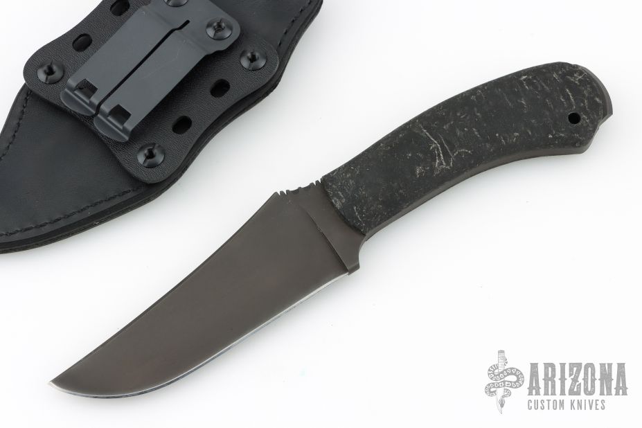 Like most items in the Winkler Knives product line, the WK Crusher Belt Knife was designed to meet the needs of an active duty Special Operations Team. A group from Naval Special Warfare familiar with the uncompromising performance of the WK Belt Knife wanted the same attributes in a knife with glass breaking capabilities. This is it. The rounded, integral extended tang meets the need and is comfortable to carry. Knife Specifications Blade steel: 80CrV2 Black oxide no-glare finish Blade length: 4.5" Overall length: 9.5" Blade thickness: .205" Full skeletonized tang Thumb index file work Sheath Lined Kydex® with leather cover Designed for multiple carry options (See our Info page for carry options) Comes with original packaging. Excellent condition.