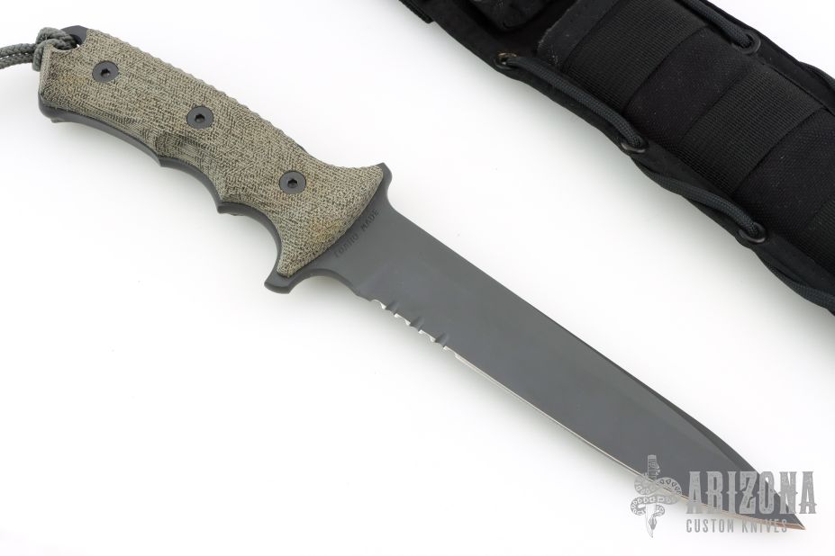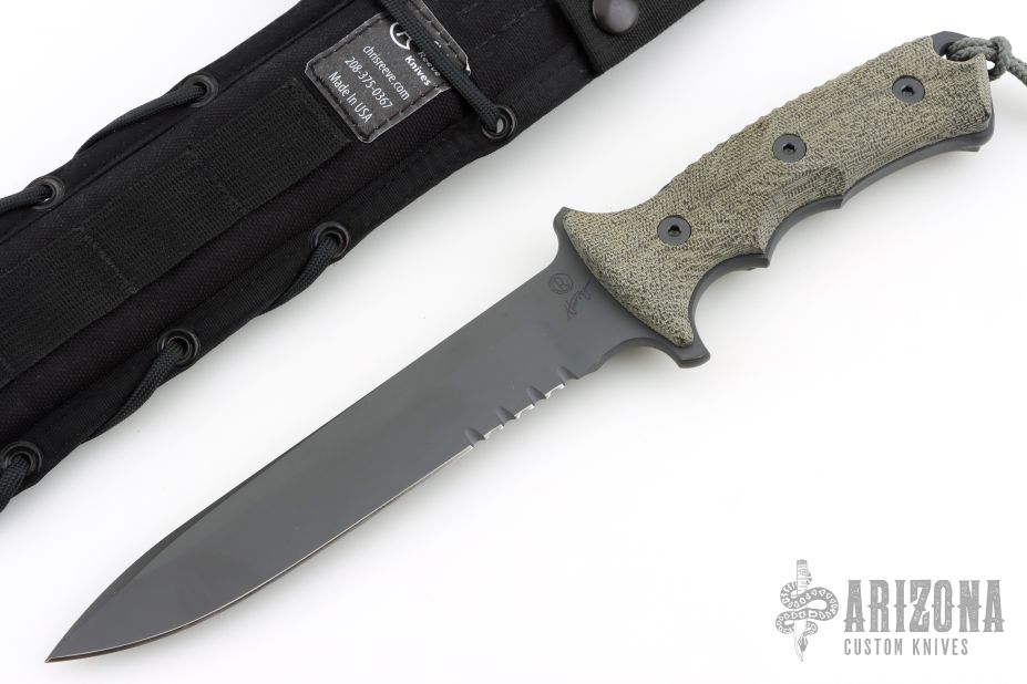 "This knife is known to the U.S. Army Special Forces as "The Yarborough" and to everyone else as "The Green Beret Knife". It is a no-nonsense, hardworking tool, designed by renowned knife maker and designer Bill Harsey, with function and manufacturing input from Chris Reeve. Made in Boise, Idaho by Chris Reeve Knives, the Green Beret Knife is a using knife that, just like the men for whom it was designed, is efficient, tough and uncompromising." Includes a black nylon sheath. Has a couple very light scuffs, otherwise excellent condition. Comes with original box and papers dated October 22, 2018.