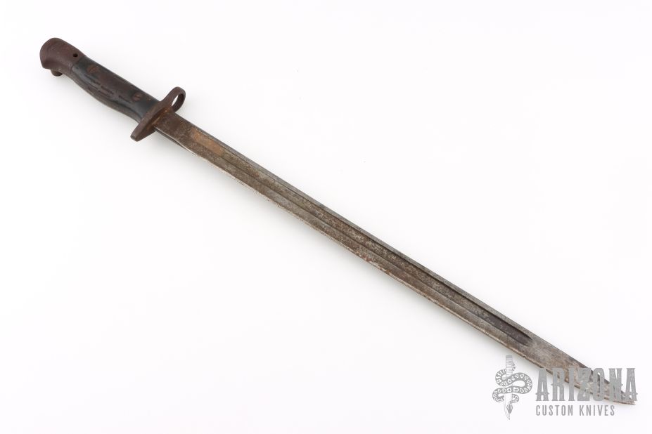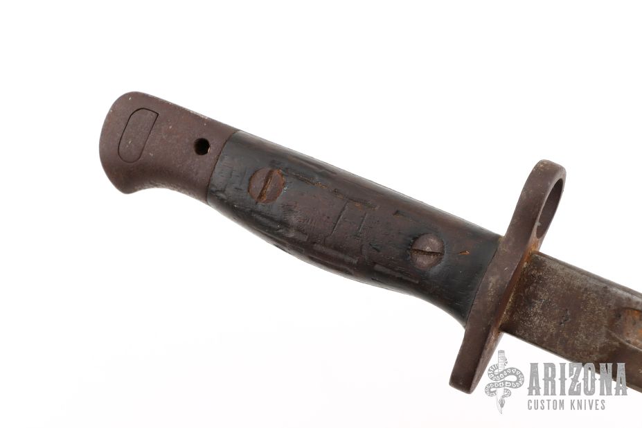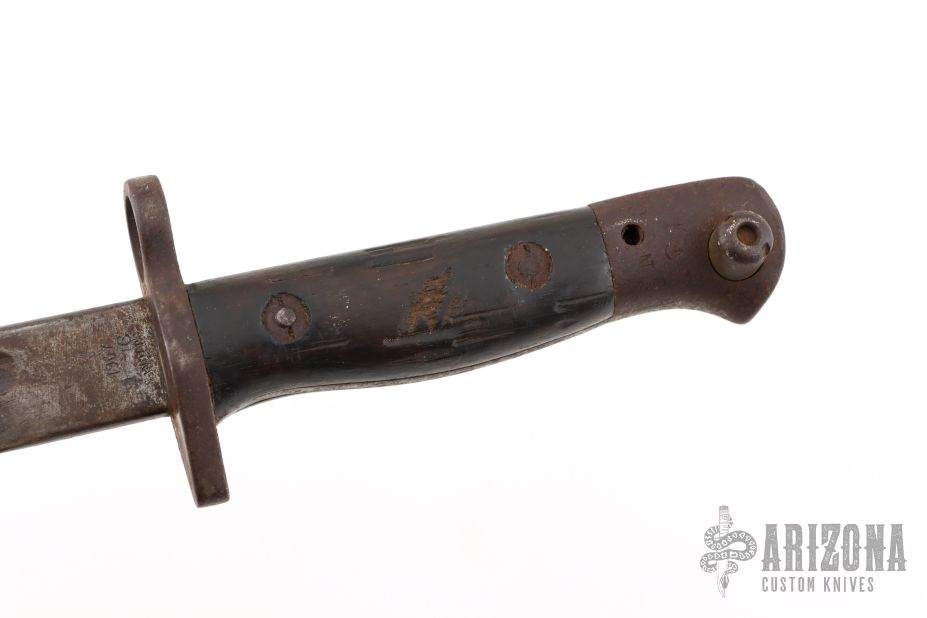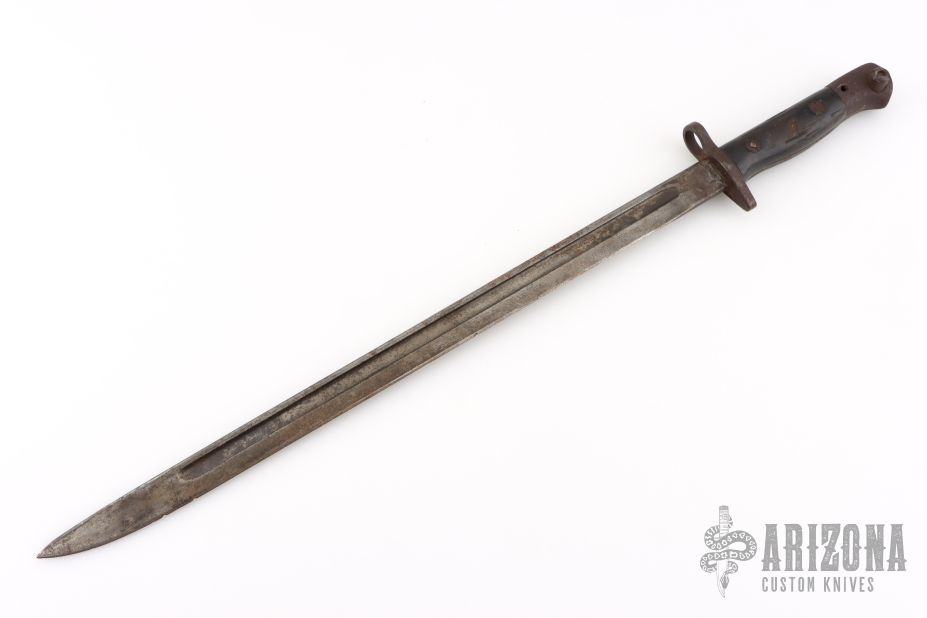 The Pattern 1907 bayonet, officially called the Sword bayonet, pattern 1907 (Mark I), is an out-of-production British bayonet designed to be used with the Short Magazine Lee Enfield (SMLE) rifle. The Pattern 1907 bayonet was used by the British and Commonwealth forces throughout both the First and Second World Wars.  Okay condition for its age.