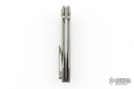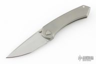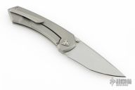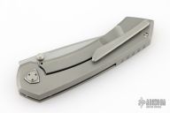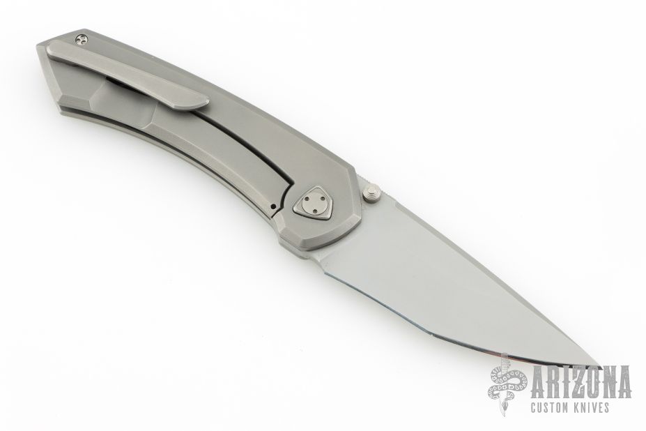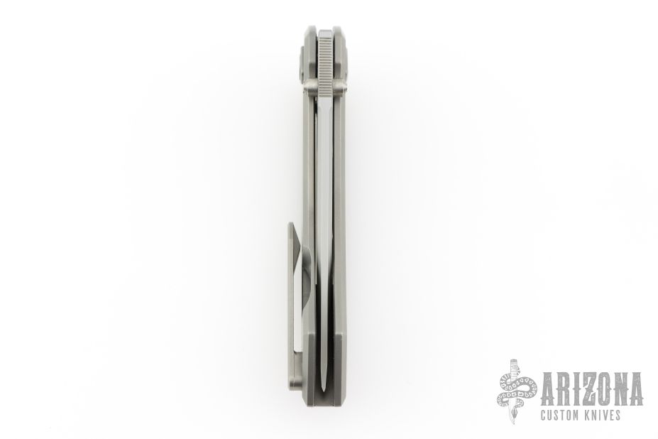 This Shiru by Edison Barajas features a bead blasted blade with notched thumbrest and dual thumbstuds, can be front flipped. The handle has a blasted titanium frame with matching backspacer and tip up clip. Has custom pivot. Rides on bearings, nice detent, lockup and blade seating. Comes with original box and COA dated 03/24. Excellent condition.