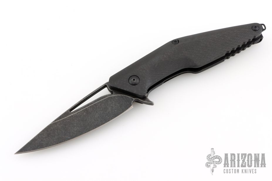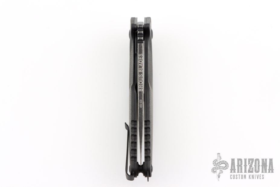 "Jason Brous began his efforts in knifemaking with the benefit of nearly 10 years of experience in CNC machining. His father owns a shop that specializes in the custom machining of high-precision components, mainly for the medical industry. Jason spent a lot of time in his father’s shop while growing up, and by his mid teens was actively helping out with production. His skills and knowledge steadily increased and by the time he was 20 he was a seasoned and very competent machinist. Jason's interest in knives actually began with art - specifically a style called “Bio-mechanical” - as practiced by one of his favorite artists, a Brazilian painter and tattooist named Lango. Biomechanical art (also called Biomech) is a surrealistic style of art that combines elements of machines and robotics with organic animal features. Intrigued by this style of art and its similarity to many fantasy knives, Jason figured that knifemaking would be a natural extension of his metalworking skills and an appropriate medium for his artistic ideas. Although he had no specific training in knifemaking, in 2010 he designed and made his first knife - a fantasy design with a Biomech flavor. Through persistent trial and error, Jason changed his style of knife design to focus on functional simplicity, while still maintaining a strong artistic signature. His early successes came in the form of a series of stout neck knives with dual finger-hole grips. Fans of these “Silent Soldier” neck knives began asking for other expressions of the design. Since then, Jason has created numerous variations including a clip point version, a tanto version and the very popular folder version called the Silent Soldier Flipper."