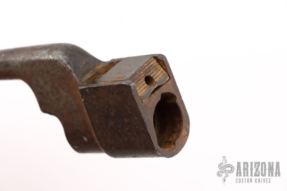 The No. 4 bayonet was created to replace the current bayonet at the time in service which was the World War I vintage Pattern 1907 bayonet. Heavy patina. Has scuffs and scratches otherwise the knife is in good condition for its age.