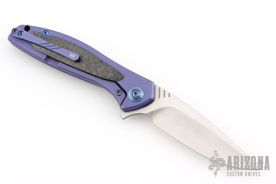 This Wisp model sports a tumbled titanium handle with carbon fiber inlays and a satin finished blade. The WE Knife Co. Wisp offers a full-size folding knife with a slim EDC build. Manage any large cutting task without being weighed down by an overbuilt monstrosity. A flipper opener and ceramic bearings offer rapid deployment so you can always have your blade ready. Take your EDC game up a notch with the WE Knife Co. Wisp folding knife.