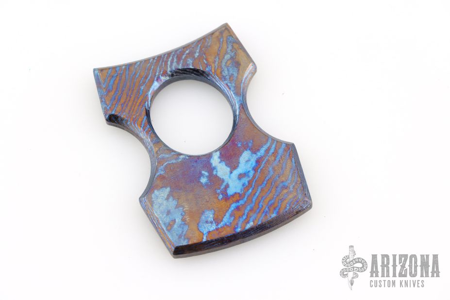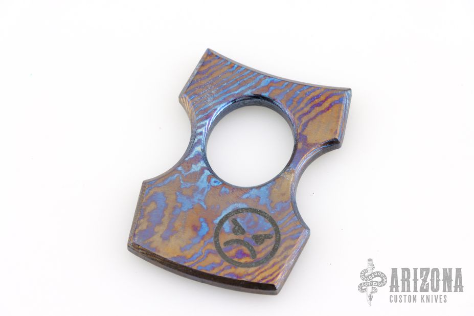 This Knuckle by MG Customs is made of textured pattern welded titanium, .244" thick. New from maker.