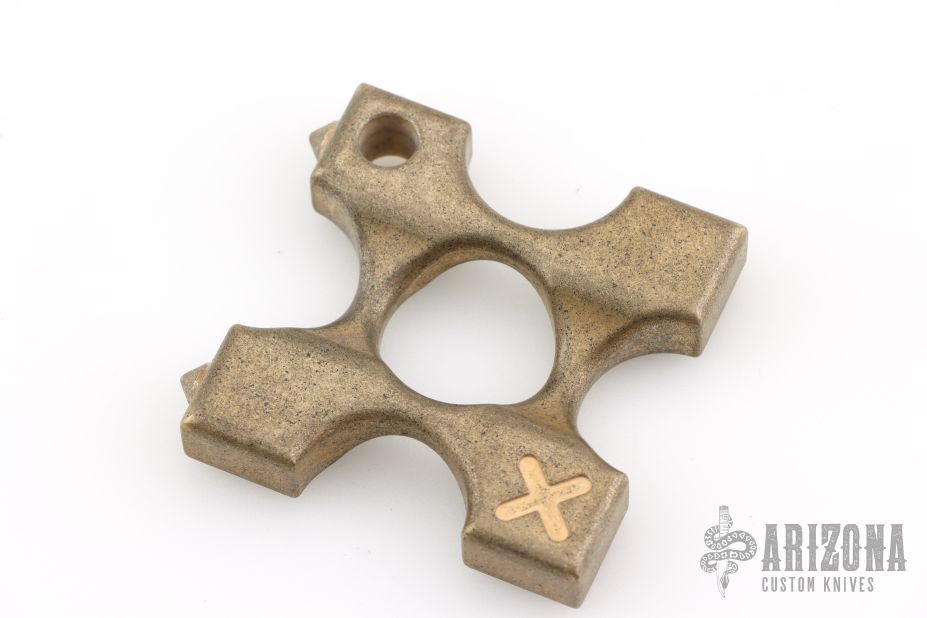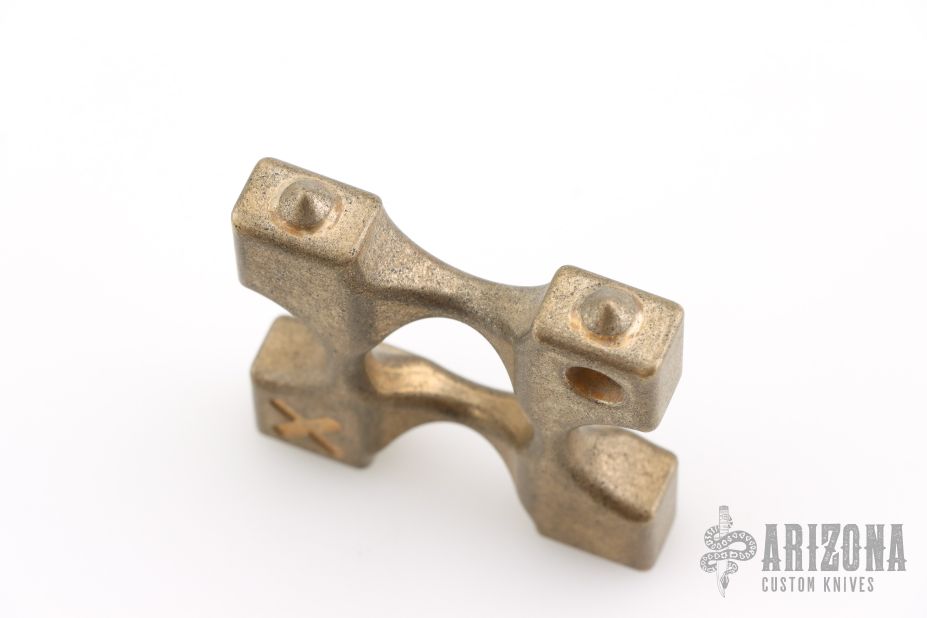 This Knuckle by MG Customs is made of brass with nice contouring, and two spikes at the top. Lanyard hole and .453" thick. New from maker.