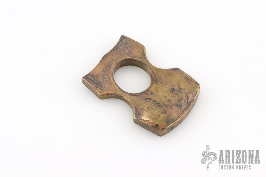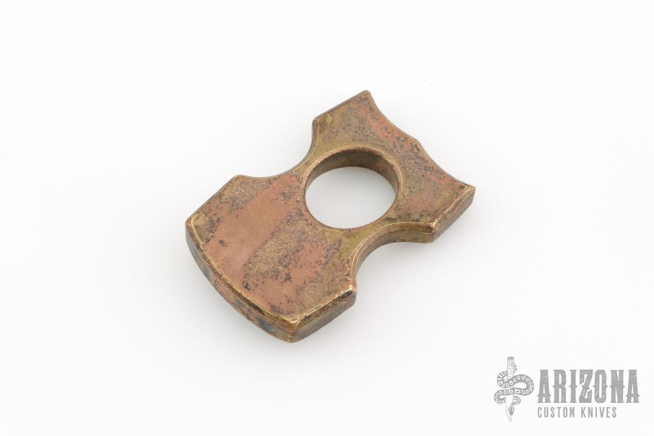 This Copper Knuckle by MG Customs is made of copper with nice contouring, aged finish, the bottom is rounded to fit into the palm better, .561" thick. Comes in a leather sheath. New from maker.
