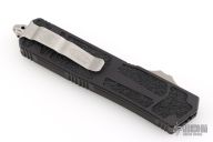This Scarab II by Microtech features a stonewash finished blade with fullers. The handle has a black aluminum handle with non-slip inserts, a single glass breaker and tip down stainless steel clip. Comes with original box and papers. s/n 831 dated 01/21. Has a couple light scuffs, excellent condition otherwise.