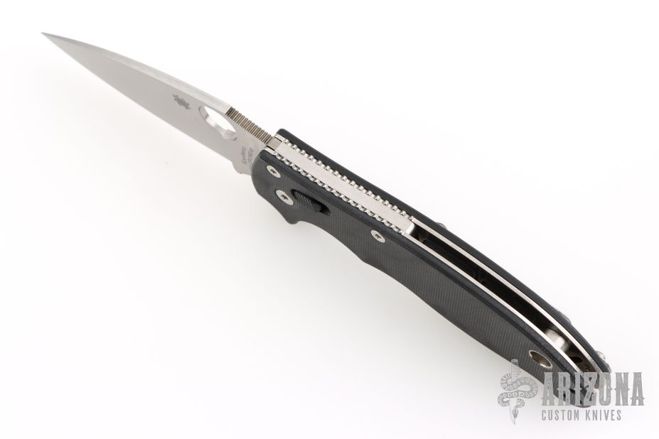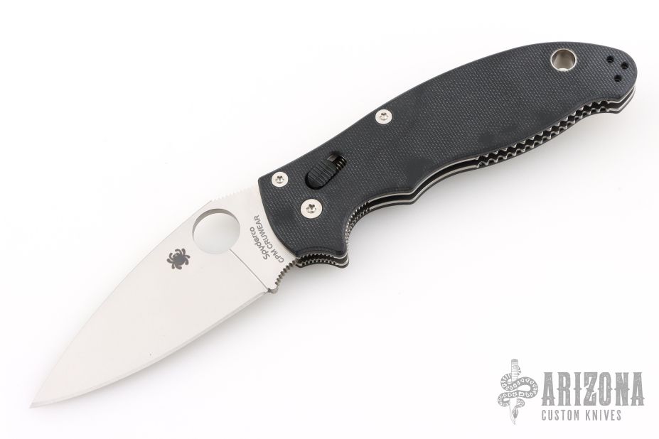 This Spyderco Sprint Run MANIX 2 knife features a smoth black G-10 handle and a CPM CRUWEAR blade. The Manix 2 features Spyderco's Ball Bearing Lock, which operates around a free-floating ball bearing contained inside a custom polymer cage. The ball bearing's round shape allows the lock to self-adjust across a large surface ensuring smooth and consistent lock-up every time it is engaged. The Ball Bearing Lock is engineered to be self-contained meaning there is no need for internal liners to support it, allowing the folder to be manufactured liner-free and extraordinarily light weight. Comes with original box and papers. Excellent condition.