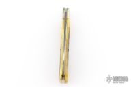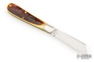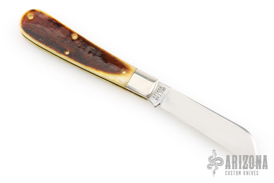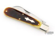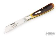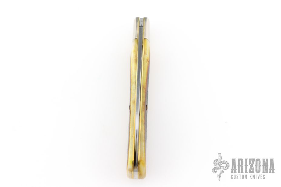 This knife features a single satin finished blade with a single nail nick.  The handle features nickle silver bolsters, antique yellow natural bone covers, brass liners and a steel backspring.  Includes the original tube and packaging.  Excellent Condition.