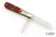 This knife by Great Eastern Cutlery features a two satin finished blades with nail nicks. The handle has nickel silver bolsters, rough sawcut bone covers, brass liners and stainless steel springs.  Comes with original tube, and button. Excellent Condition.