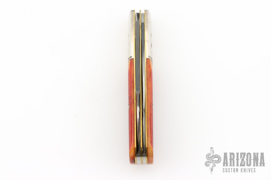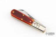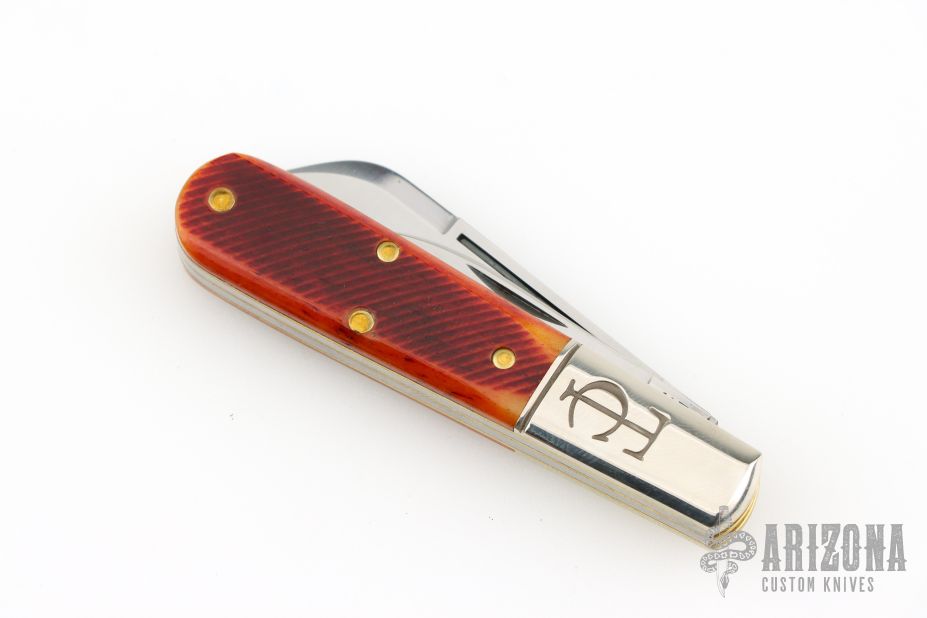 This Barlow by Great Eastern Cutlery features satin finished blades with nail nicks. The handle has stainless bolsters, autumn peach sawcut bone covers, stainless steel liners and stainless steel spring.  Comes with original tube. Excellent condition.