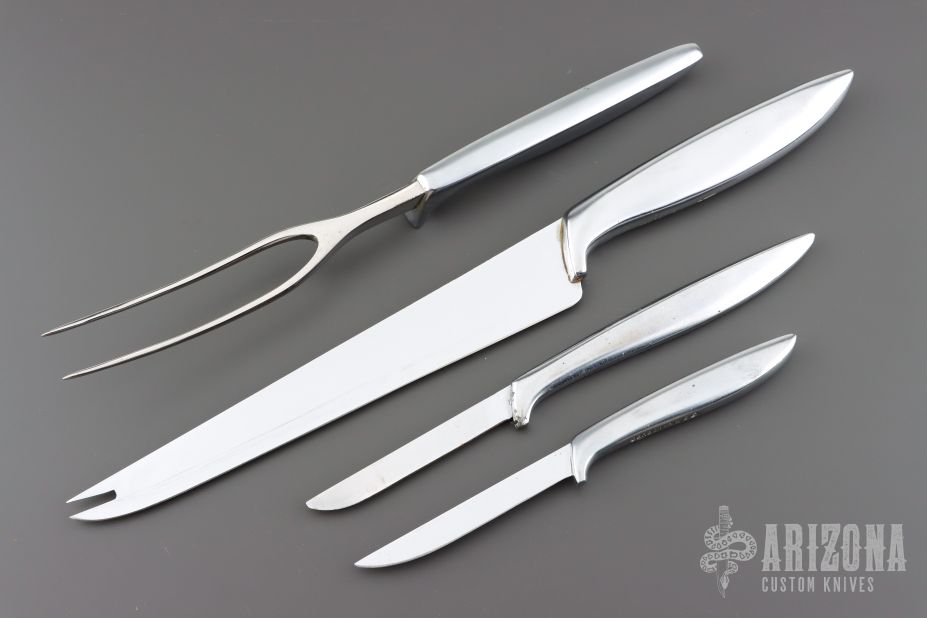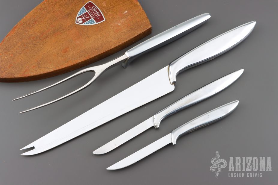 Gerber Vintage Kitchen Set - French Snick, Durendal, Pixie w/ Fork & Wooden Display Shield