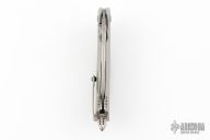 This Matrix flipper by Microtech features a hand rub satin finished blade with a notched thumbrest and flipper. The handle has a titanium frame, carbon fiber inlays, and anodized titanium pivot collars. Comes with original box and papers. Nice detent, lockup and blade seating. Excellent condition.
