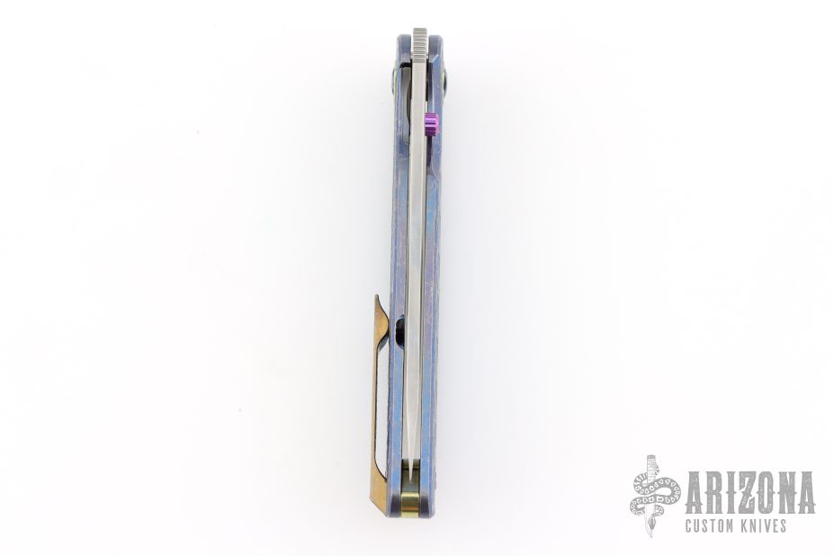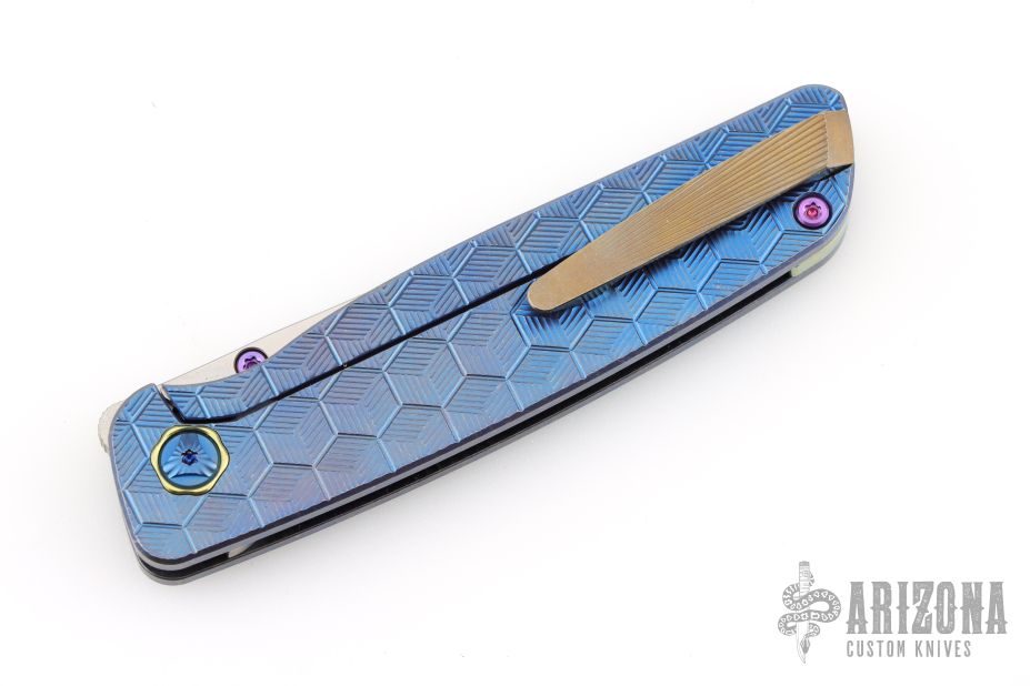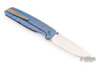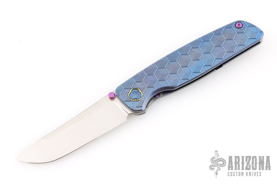 This Cypress by Robjohnsons features a bead blast finished blade with thumbhole, notched thumbrest and flipper. The handle has a milled and anodized titanium frame with anodized titanium backspacer and tip up clip with hidden screws. Rides on bearings, nice detent, lockup and blade seating. Come with original box and COA dated 12/2/25 and #168. Excellent condition.