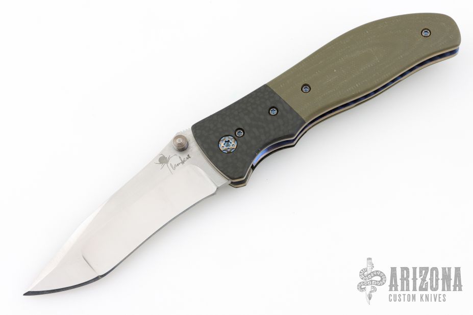 "I believe that in order to make a superior knife you must use superior materials. That is why I work with top grade, high-tech materials. The steels I generally use in my folders and fixed blades are CPM S30v, CPM 154 CM, BG-42, and Damasteel. The handle materials I mostly use range from G-10, Micarta, and carbon fiber to mother of pearl and fossilized mammoth ivory. I exclusively use 6al/4v titanium for the liners in my folders. I mostly make my bolsters from materials such as 6al/4v titanium, damascus, carbon fiber, timascus or mokume. When making Japanese style blades I generally use 1050, 1084, or L6. The handles will usually consist of a phenolic handle covered in stingray skin then wrapped with a nylon cord that has been impregnated with resin to give it maximum strength, toughness, and longevity. I am constantly striving for perfection in creating, for what I feel is one of the highest quality knives on the market today."