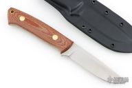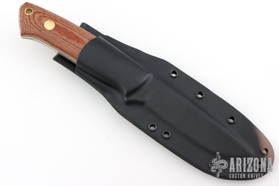 This K-22 Buffalo River Hunter by Dozier Knives features a satin finished blade, .129" blade stock and .911" blade depth, full tang construction. The handle has natural canvas micarta scales with brass pins and lanyard hole. Comes with kydex sheath with belt clip. New from maker.