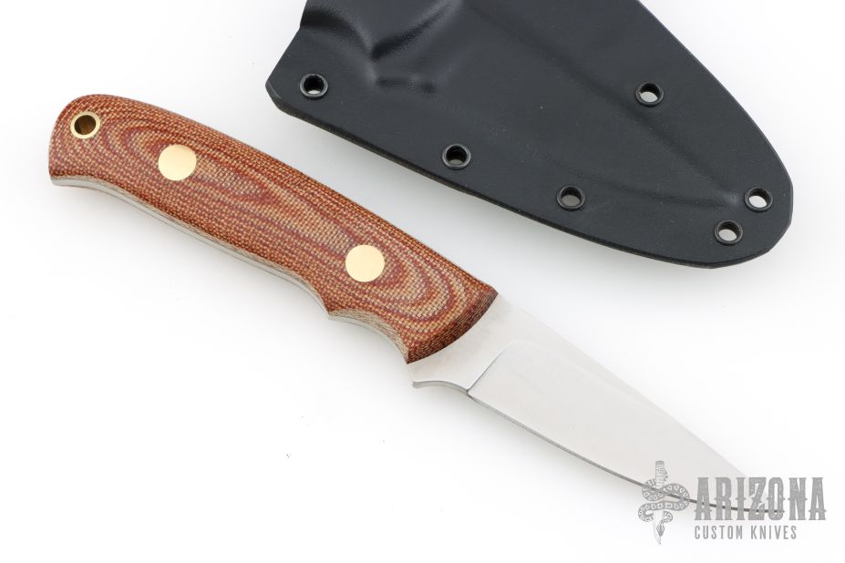 This K-29 Sweetwater by Dozier Knives features a satin finished blade with .135" blade stock and .841" blade depth, full tang construction. The handle has natural canvas micarta scales brass pins and lanyard hole. Comes with kydex sheath with belt loop. New from maker.
