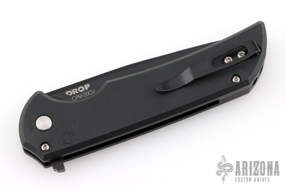 This Mordax by Pro-Tech is a Ferrum Forge design that was produced trough MassDrop. It features a black blade with flipper. The handle has a black aluminum frame with tip up stainless steel clip. Has some light marks on the frame, excellent condition otherwise.