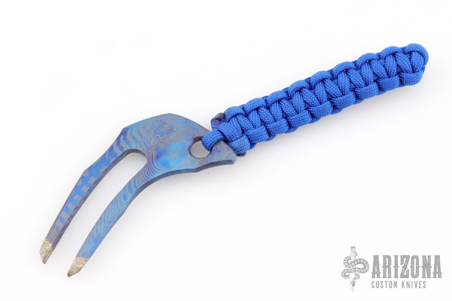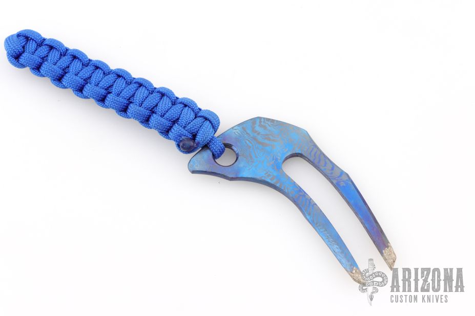 This Titanium Divot Tool by Warren Thomas is made from .128" thick "Fingerprint" anodized titanium with carbide edged tips. Comes with COA dated 2021. Excellent condition.