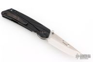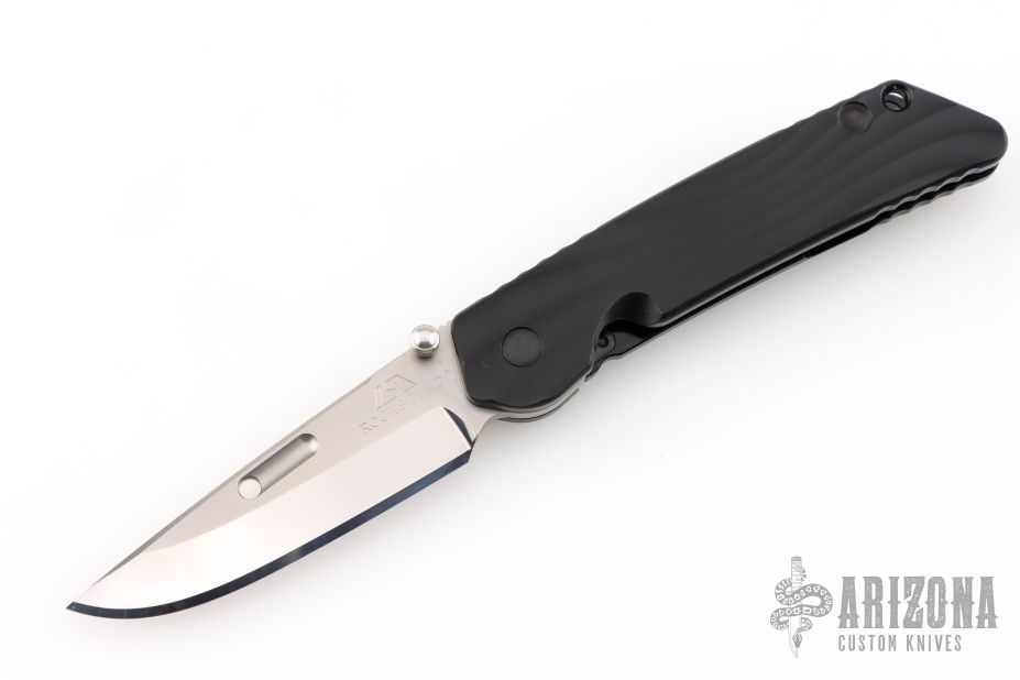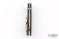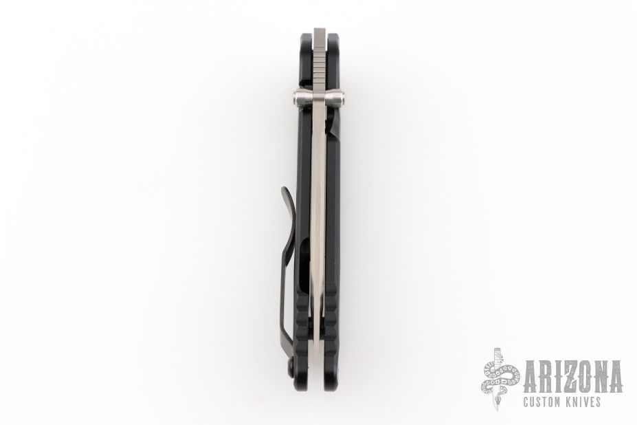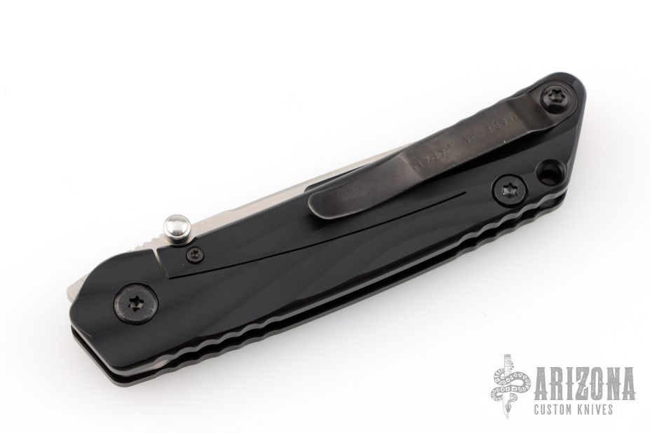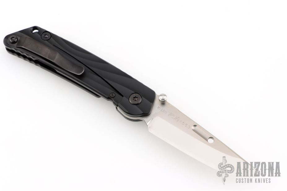 "The blade is convex on both sides in the tradition of the highly praised Japanese sword. This shape is both sharp and strong, and can still slice paper even after the 1,000 of hemp rope cuts. Using this blade form is one superb method of making an edge thick without losing of its sharpness. This is a knife of preeminent sharpness. You can enjoy its strong cutting capabilities for a long time. Even if used for rigorous cutting, the blade will not bite thanks to its convex shape. Other knives often will bite, and may nick if it is pulled out suddenly at that time. This knife scratches the plate of china. Please do not use it to cut food on the plate." The handle is sculpted black aluminum and tip up black stainless steel clip. #1053 on blade. Comes with original box and COA. Excellent condition.