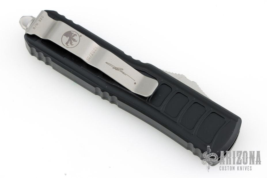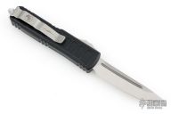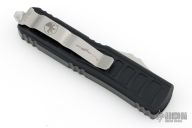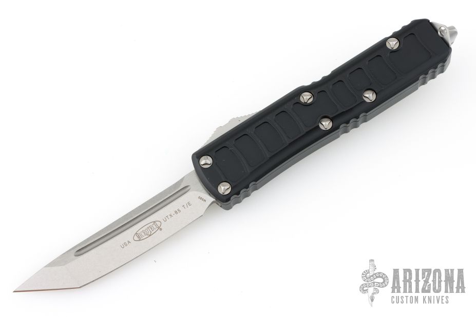 The Microtech UTX-85 OTF knife is the perfect combination of compact size and big performance. At 85% the size of the Ultratech, the Microtech UTX-85 is manufactured with the same materials, on the same machines, and with the same ingenuity as its predecessor. The Microtech UTX-85 is the perfect knife for all situations--no matter what your cutting task; it will mesh seamlessly with your lifestyle. This UTX-85 II has improved handle texturing for a more positive purchase. With its quick one-handed open and close action, it gets the job done in seconds. Equipped with an ambidextrous pocket clip and compact size, this is the perfect choice for everyday use and carry.