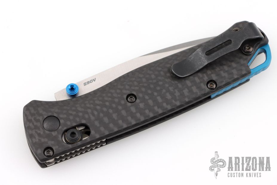 The Benchmade Bugout offers a lightweight, ergonomic build designed with everyday carry and general outdoor use in mind. Its super premium CPM-S90V blade sports a partial swedge to provide a finer point, and comes fitted with blue anodized, dual thumb studs for easy one-handed operation. The comfortable handle has been shaped for added grip without being abrasive. Comes complete with an oversized lanyard hole and reversible deep-carry clip for convenient EDC.